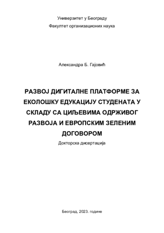 Развој дигиталне платформе за еколошку едукацију студената у складу са циљевима одрживог развоја и Европским зеленим договором : докторска дисертација