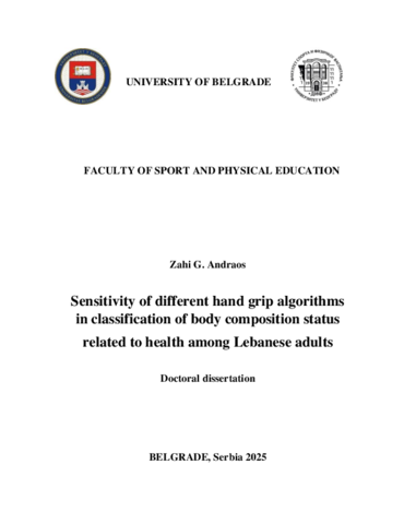 Sensitivity of different hand grip algorithms in classification of body composition status related to health among Lebanese adults : doctoral dissertation