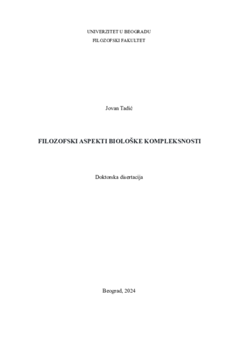 Filozofski aspekti biološke kompleksnosti : doktorska disertacija